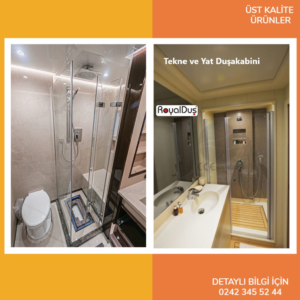 Antalya merkezli tescilli marka Royal Duşakabin, yat ve tekneler için duşakabin üretiminde kalite ve dayanıklılığı ön planda tutar. Paslanmaz profiller, yüksek kaliteli temperli cam ve marin tasarım teknikleri ile ürünler uzun yıllar sorunsuz kullanım sağlar. Müşteriye özel ölçü ve tasarım seçenekleri ile yat ve teknelerinize özel çözümler sunar.